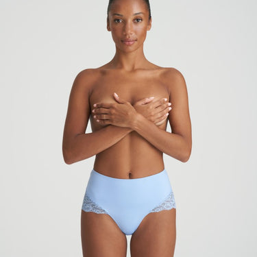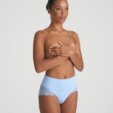 High lace panties from Marie Jo's Color Studio series. This popular panty is made of firm and smooth microfiber at the front, which has a slight smoothing effect without being a definite shape panty. At the back, the panty has the series' fine soft lace without edges, so you don't get marks. The panty has a high waist and goes approx. to the navel.