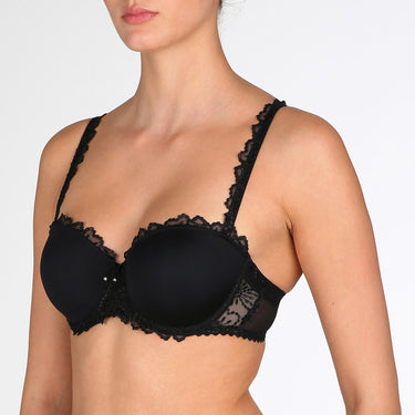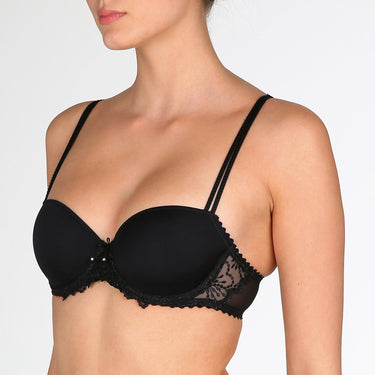 Strapless bra from the Marie Jos Jane series. The bra has underwire and thinly padded cups. The bra comes with straps that can be taken on and off as desired. The smooth cups make the bra invisible even under tight-fitting clothing.
