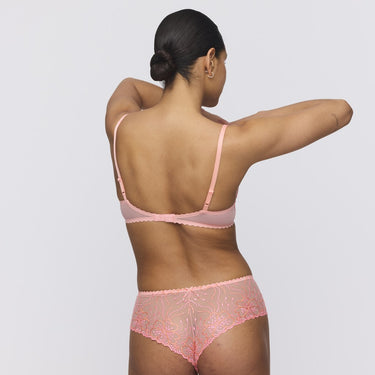 Luksusstring fra Marie Jos Jane serie. Luksusstringen er en blanding mellem en hipster og en klassisk string og har brede sider, med en flot skrå udskæring bagpå, der er afsluttet i seriens blonde, som ikke giver mærker.