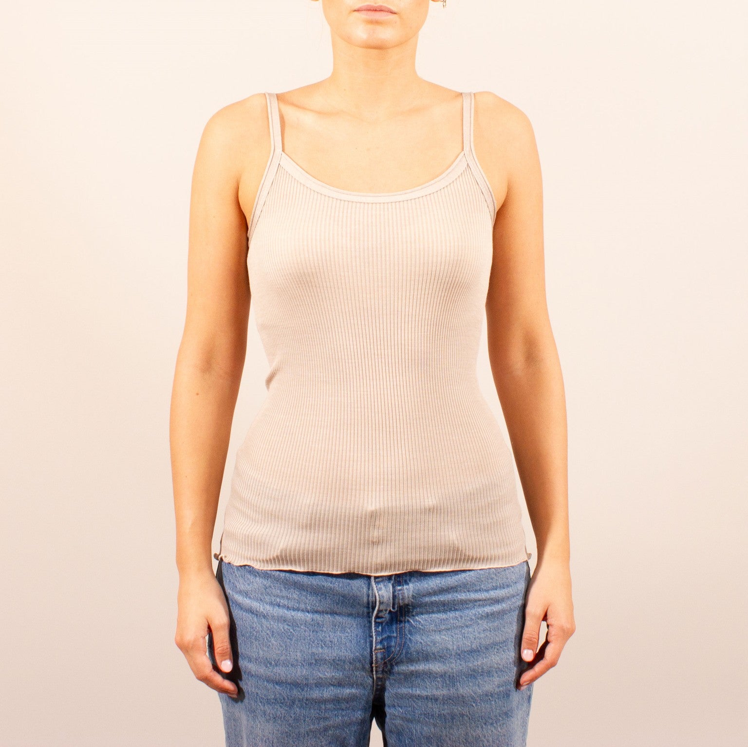 Lana Seta spaghetti top uld/silke rib