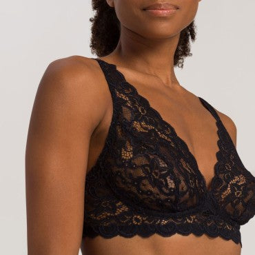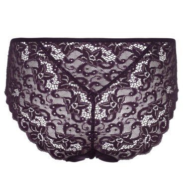 Italiensk trusse fra Hanros Moments serie. Moments serien er lavet i en blød og strækbar blonde, der smyger sig om kroppen. Den italienske trusse har mellem taljehøjde og seriens fine blonde bagpå og en blød bomuld foran.