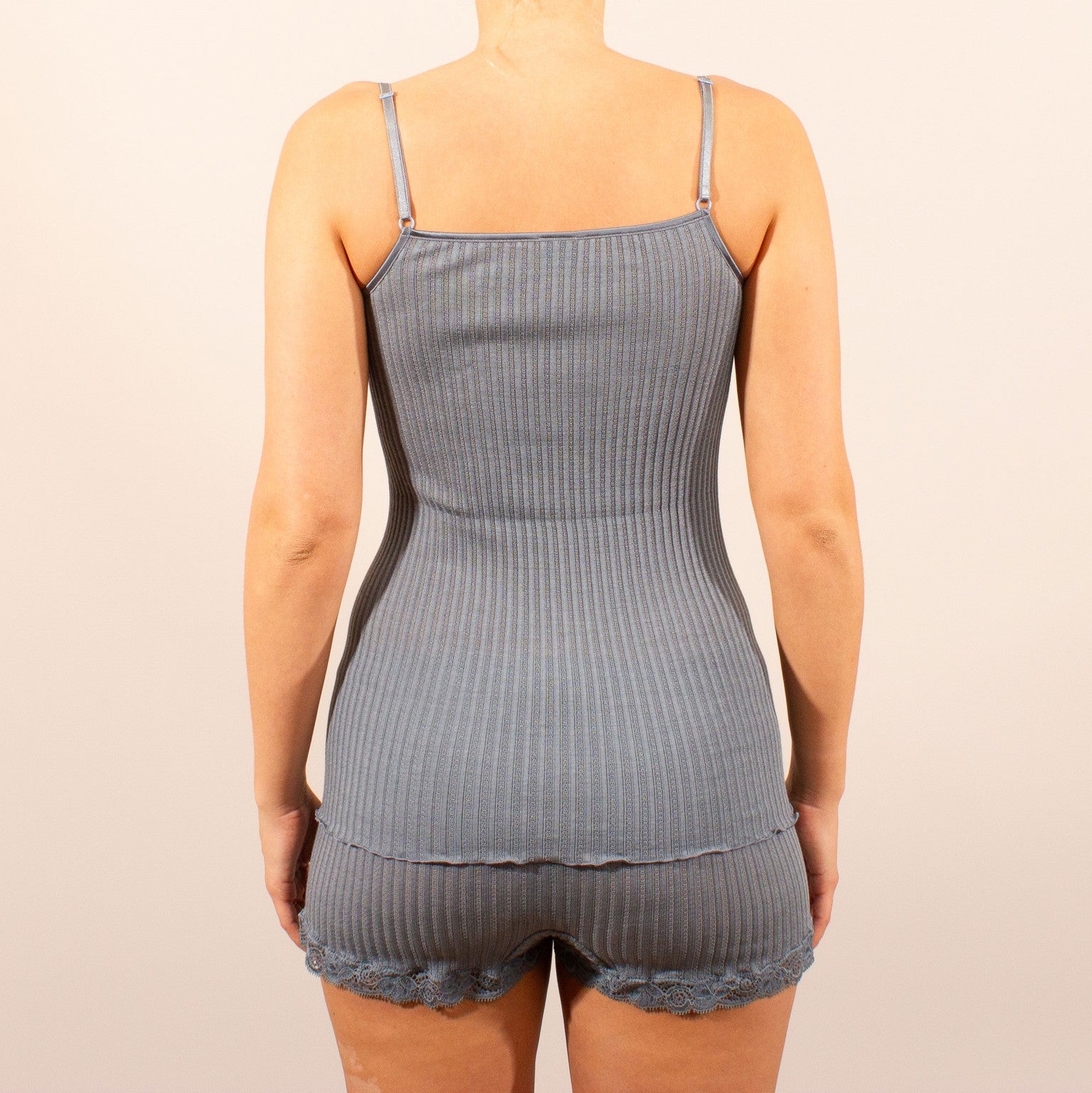 Operatino spaghetti top uld/silke med Pizzo blonde
