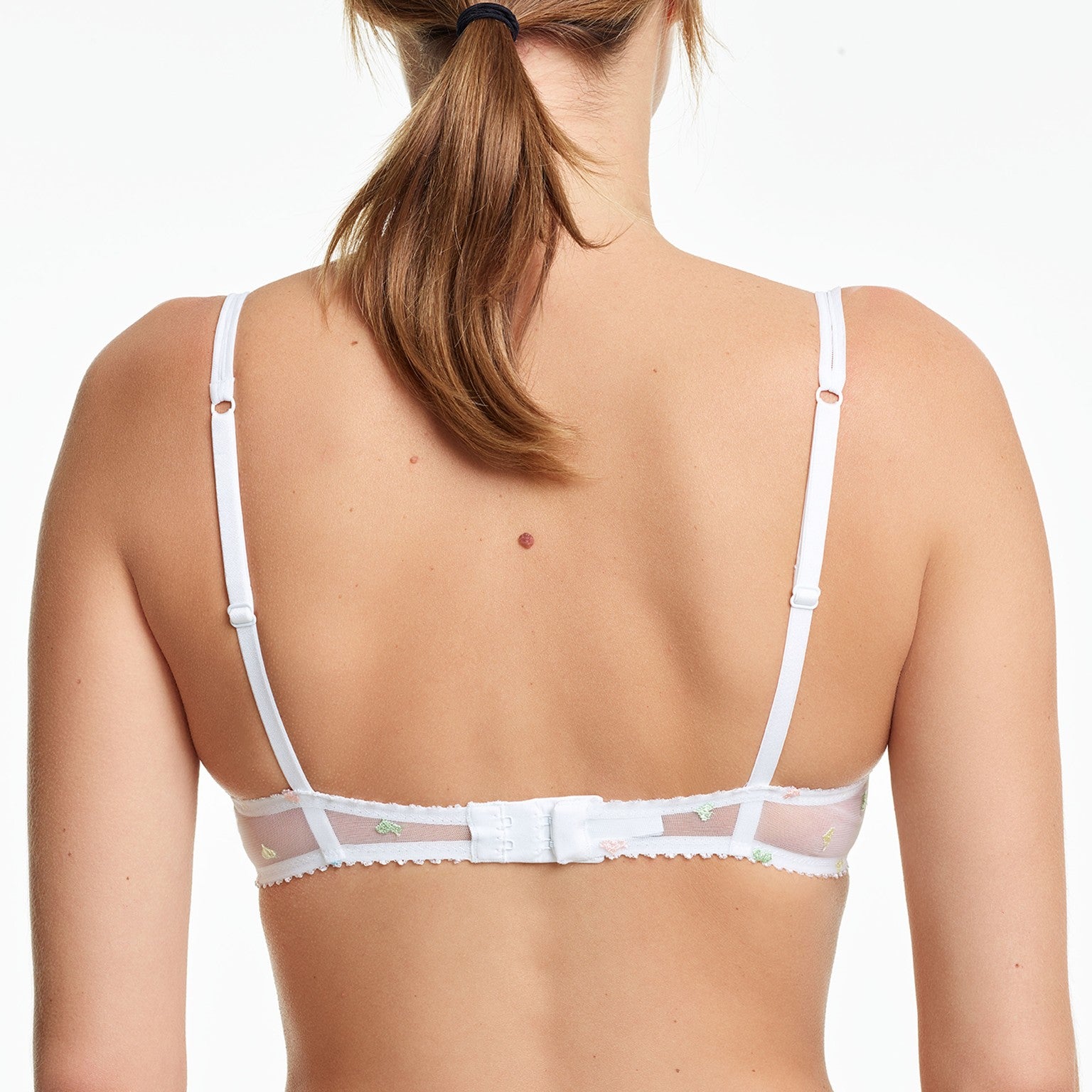 Farve: love, er offwhite tyl med pastelfarvet broderi