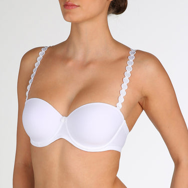 Stropløs bh fra Marie Jos Tom serie. Bh'en er med bøjle og har skåle med tynd vattering. Skålene er glatte og usynlige under tætsiddende tøj. Der følger stropper med, som kan tages af og på efter ønske. De med følgende stropper kan indstilles til halterneck.